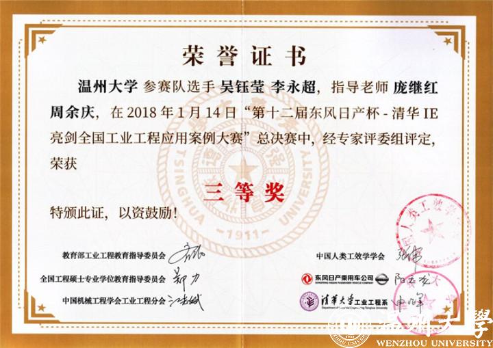 “工业工程专业创新实践了‘创-用’融合的学生科技创新能力培养方式。”少妇白洁 机电工程学院副院长姜锐补充介绍,该专业非常注重学生的实践和创新能力培养,给学生提供了丰富的自我价值实现途径。如以创新到创业、创新转应用的“创-用”融合为导向,形成学生参与校企项目、创新创业训练实践和学科竞赛等多元形式的创新能力培养体系。2018年1月,该专业学生吴钰莹和李永超参加全国工业工程应用案例大赛,最终荣获三等奖,同台竞赛者包括清华大学、上海交通大学、华中科技大学等知名高校的学生。该项赛事是目前国内工业工程领域最具影响力的比赛。