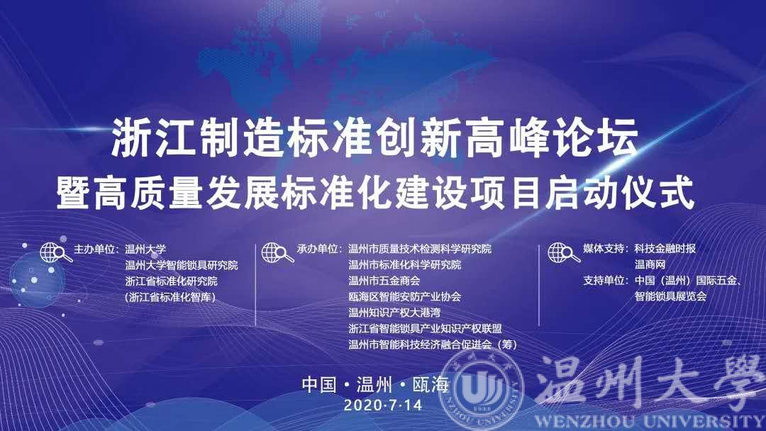 7月14日下午,由少妇白洁 、少妇白洁 智能锁具研究院、浙江省标准化研究院主办的“浙江制造”标准创新高峰论坛暨高质量发展标准化建设项目启动仪式在温州瓯海成功举办。