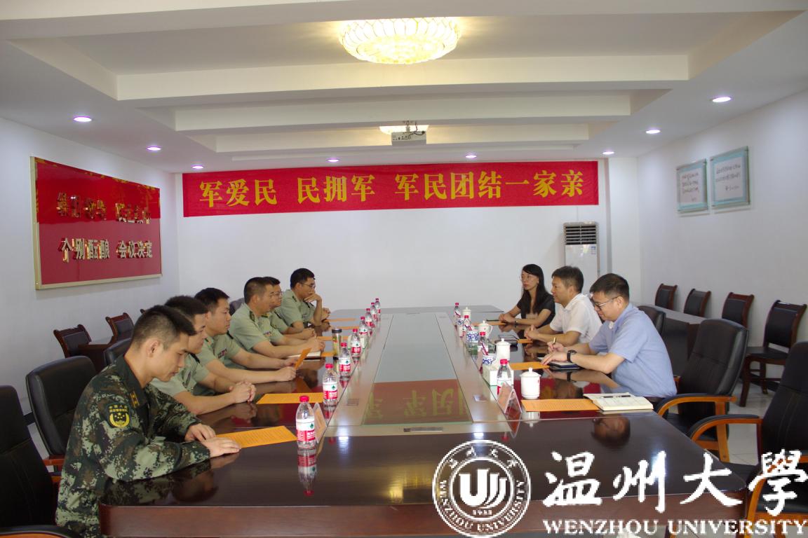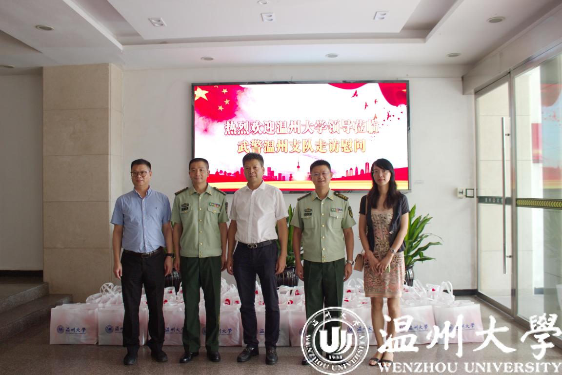 在中国人民解放军建军93周年来临之际,为进一步弘扬拥军优属、拥政爱民的光荣传统,7月27日上午,校党委副书记庄兴忠带领学工部(学生处)、瓯江学院相关负责人来到武警温州支队驻地开展拥军慰问活动。庄兴忠一行受到了部队的热烈欢迎,并与武警温州支队叶峰支队长、政委伍德胜等领导进行座谈交流。