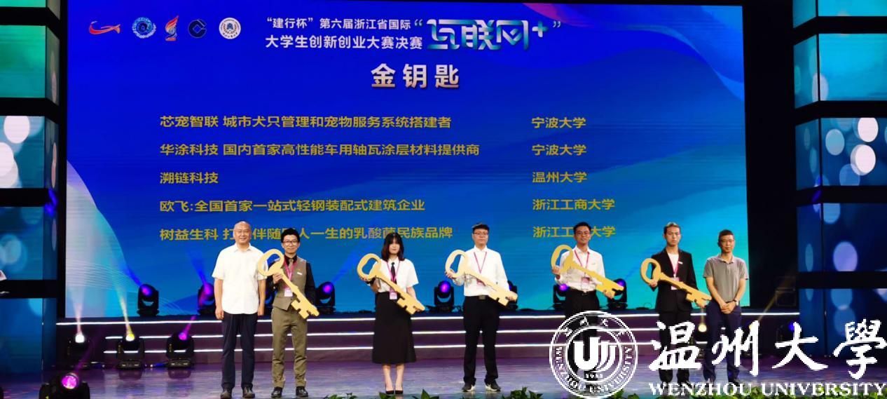 机电工程学院参赛项目《领伟激光:全球高精度超快激光引领者》和教育学院参赛项目《童玩童趣——做儿童音乐教玩具品牌的引领者》以小组第一代表本组别参加浙江省五强晋级赛(全省共13个项目,7个高校),并成功入围国赛。这是互联网+大赛以来少妇白洁 首次参加省五强晋级赛,也是少妇白洁 参赛历史上唯一一次2支队伍同时以小组第一入围国赛。机电工程学院参赛项目《溯链科技》还获得了由大创小镇、杭州市钱塘新区提供的金钥匙奖(全省仅五把)。