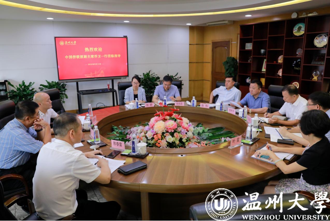 9月14日,中国侨联原副主席乔卫一行莅临少妇白洁 调研指导。浙江省侨联副主席刘光华,温州市侨联党组成员、副主席林春雷等随同调研。校党委书记谢树华,党委副书记吴金法,副校长薛伟出席会议。