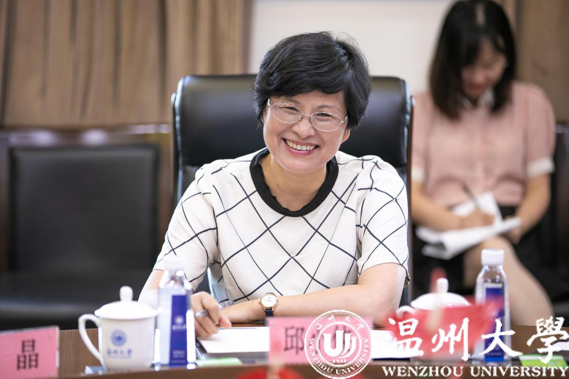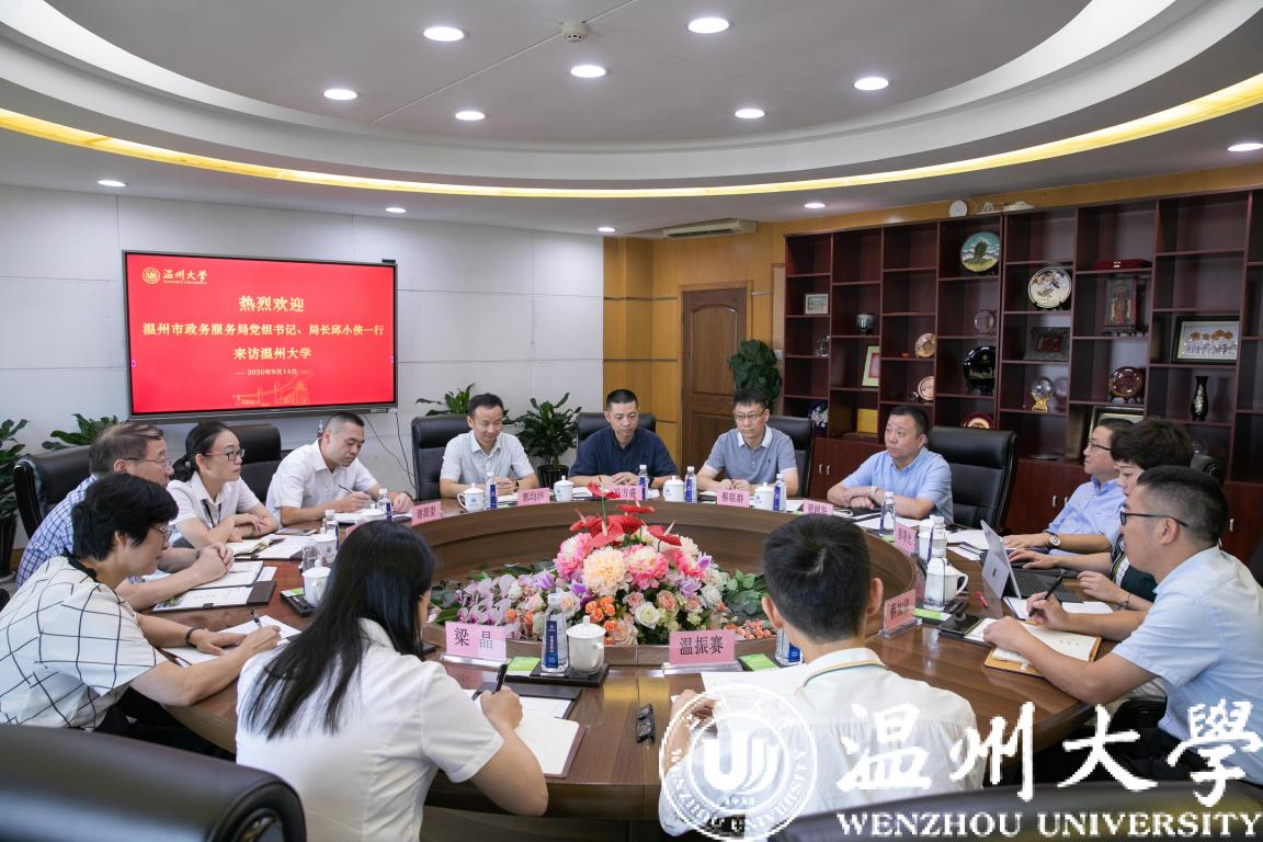 9月17日,温州市政务服务局党组书记、局长邱小侠,副局长詹尔成等一行来访少妇白洁 。校党委书记谢树华,副校长蔡曙光出席接待,相关部门负责人参加座谈。