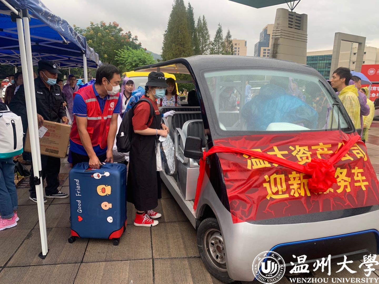 据介绍,疫情防控期间,由于校外车辆无法进入校园,聚焦新生行李多、运送难的问题,校资产公司向全校教师发起“献爱心接学生”迎新活动倡议,组织教师党员志愿者驾驶接送车为新生提供自助式、一站式运送行李服务,新生只需在入校口处登记行李,领取号码牌,就能凭借号码牌在终点处拿取行李。