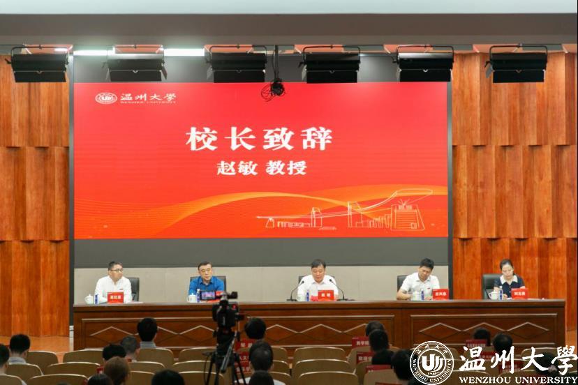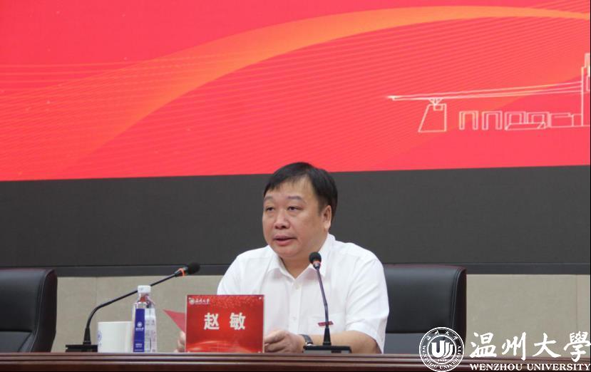 赵敏对2020级新生的到来表示祝贺和欢迎。他表示,2020年是“危中有机”、特殊而又充满希望的一年。同学们来到温大读研无疑是极为幸运的,幸运身处伟大新时代,幸运恰逢研究生教育驶入“快车道”,幸运来到改革先行地,幸运学校建设“高水平”。赵敏从三个维度介绍了温大的研究生教育。他指出,温大之“温”,在于“温暖”,用爱浇灌,向阳生长。以这次疫情为例,讲述了温大人在此期间的温暖与担当。温大之“大”,在于“立志”,立鸿鹄之志,展骐骥之跃。通过介绍温大历史上的两位院士校长苏步青和谷超豪,来阐述立志的重要性。温大之“研”,在于“研究”,是钻研探究,也是精通突破。最后,赵敏希望同学们在今后三年的研究生学习中,能真正理解“研究”两字的真谛并在学习中践行。