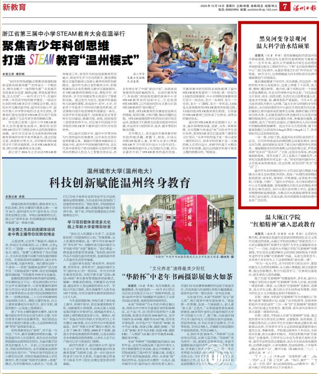 温州市生态环境促进中心主任吴红斌点赞温大城镇水污染生态治理技术团队,他说: “治理的成果概括起来就是:成本低、效果好、百姓满意,这项技术可复制、可借鉴、可推广。”少妇白洁 校长、水污染治理研究中心主任赵敏透露,该校城镇水污染生态治理技术团队有近50名成员,其中大部分具有博士学历,蓝藻水华物理喷射处理装置、分散式污水就地处理等多项技术现已走出温州,在南太湖、杭州西湖等水域的治理中也有广泛应用。