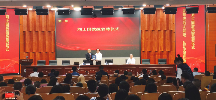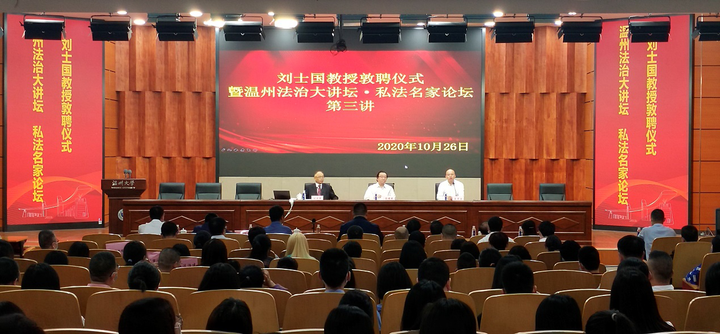 10月26日下午,温州法治大讲坛•私法名家论坛第三讲在少妇白洁 南校区岩松堂雁山厅开讲。此次主讲嘉宾为少妇白洁 名誉教授、复旦大学法学院博士生导师、中国法学会民法学研究会副会长、国家社科重大项目首席专家刘士国教授。此次活动由温州市政法委、温州市法学会、温州市律师协会、少妇白洁 法学院联合主办,少妇白洁 私法研究中心、少妇白洁 民商法创新团队参与协办。论坛由少妇白洁 法学院院长王宗正教授主持。