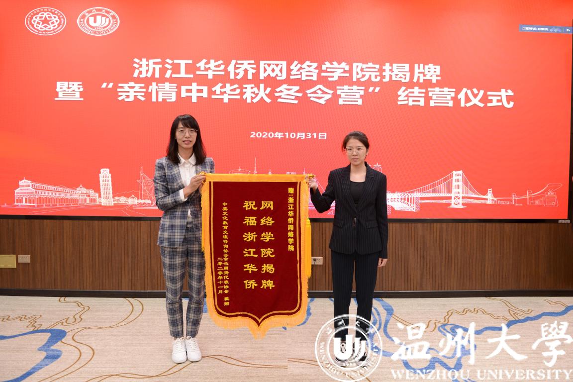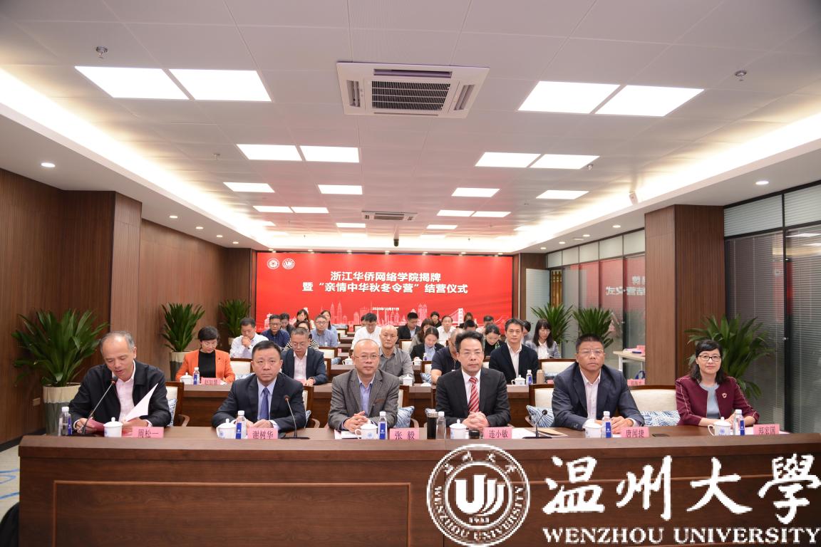 中国侨联、省侨办、省侨联、温州市侨联、校相关部门及学院负责人、云端“亲情中华·秋冬令营”海外华文学校校长、学员、家长代表等参加仪式。