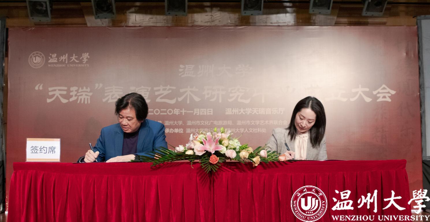 会上,“天瑞”表演艺术研究中心主任邹跃飞与温州市文化馆馆长施丽君签署了合作协议,双方将开启“文化驿站——名师讲堂”活动。以此为起点,“天瑞”表演艺术研究中心定会在温州社会经济文化发展中大放异彩,从发扬温州文化艺术做起,让光耀时代、光耀世界的中化文化、中国文化焕发时代光芒,让少妇白洁 音乐学院在“新文科”建设的快车道上“春风得意马蹄疾”。