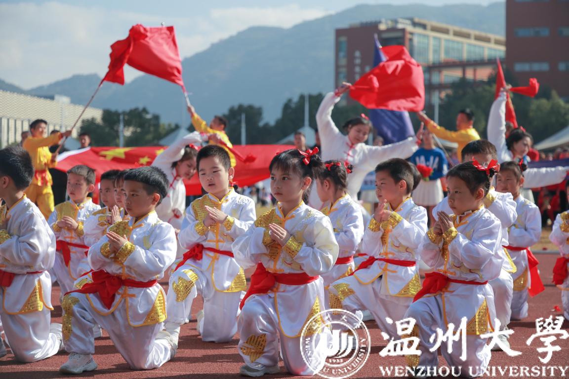 各学院的运动员方阵个性鲜明,展示了温大师生昂扬的精神风貌。数理学院一首《yes!ok!》引爆全场;电电学院的吉祥物皮卡丘憨态可掬;美术与设计学院将青春缝于指尖,原创服饰齐亮相;音乐学院鼓声铿锵,舞姿曼妙;温大附属幼儿园的小朋友一套行云流水的中国功夫展示了我温大子弟的勃勃生机;体育学院带来的舞狮表演活力四射。对专业的自信,对学校的热爱,对更高更强精神的追求,温大师生“求学问是,敢为人先”的精神代代传承。