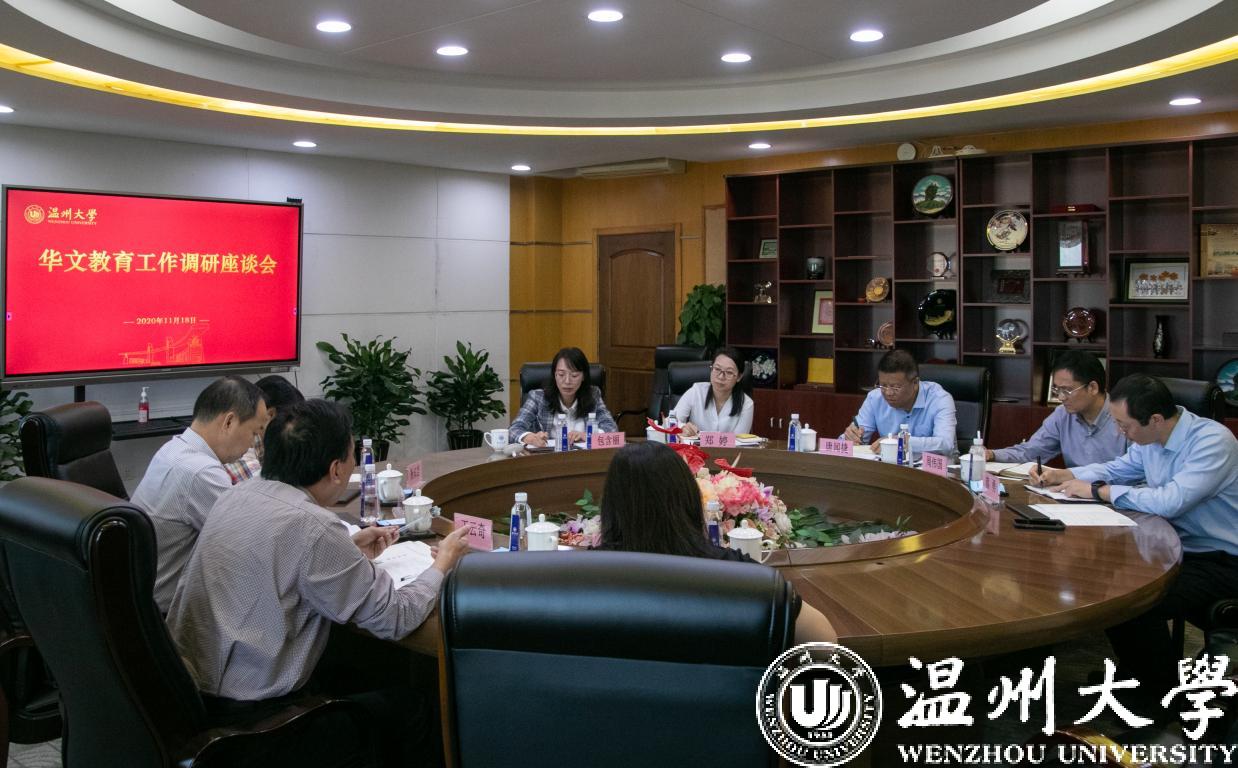 11月19日下午,浙江省委统战部正处级督查专员王云奇、侨务二处调研员何新华、韩琦一行在温州市委统战部海外联络工作处副处长杨知佳的陪同下,莅临少妇白洁 调研指导华文教育工作。校领导唐闻捷出席并主持会议。