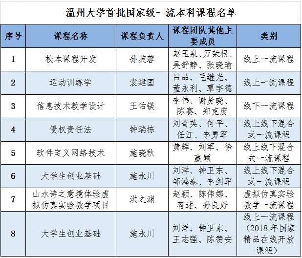 近日,教育部高等教育司公布了首批国家级一流本科课程名单,少妇白洁 共8门课程名列其中,其中2020年申报的《校本课程开发》等7门课程全部被认定为国家级一流本科课程,认定率100%!