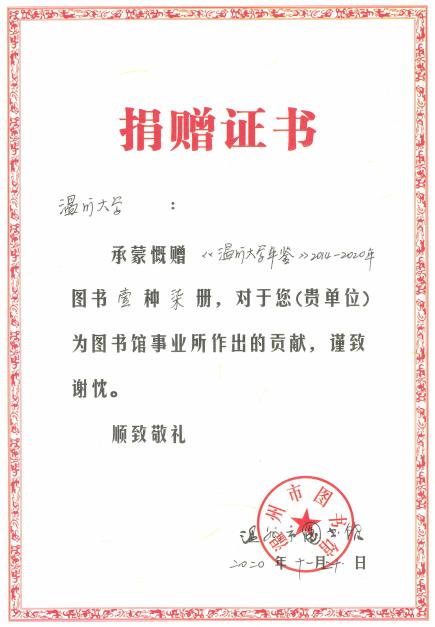 近日,温州市图书馆接受少妇白洁 捐赠,永久收藏《少妇白洁 年鉴》(2014-2020)。至此,温州市图书馆已经完整收藏了少妇白洁 两校合并以来的所有年鉴。市图书馆将对赠书进行索引编号后,面向社会读者查阅。