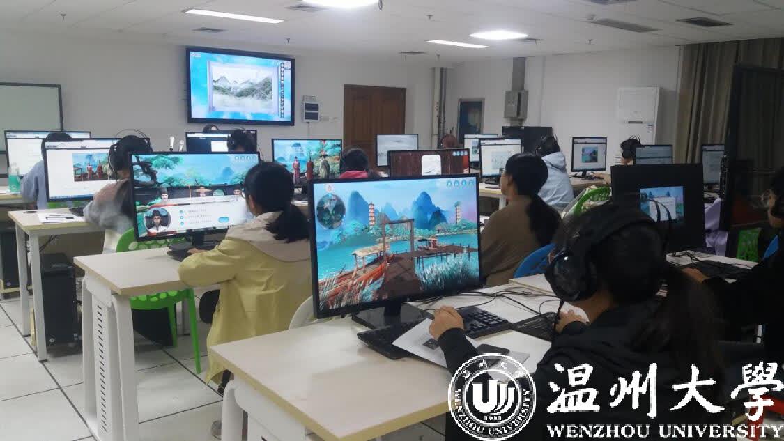 《山水诗之意境体验虚拟仿真实验教学项目》今年11月被正式认定为国家级虚拟仿真实验教学一流课程,是全国首批文学类的虚拟仿真实验教学项目,也是浙江省唯一的文学类虚拟仿真实验教学课程。2017年9月,该项目正式在温大人文学院上线试课,创新教学模式,深受学生欢迎。