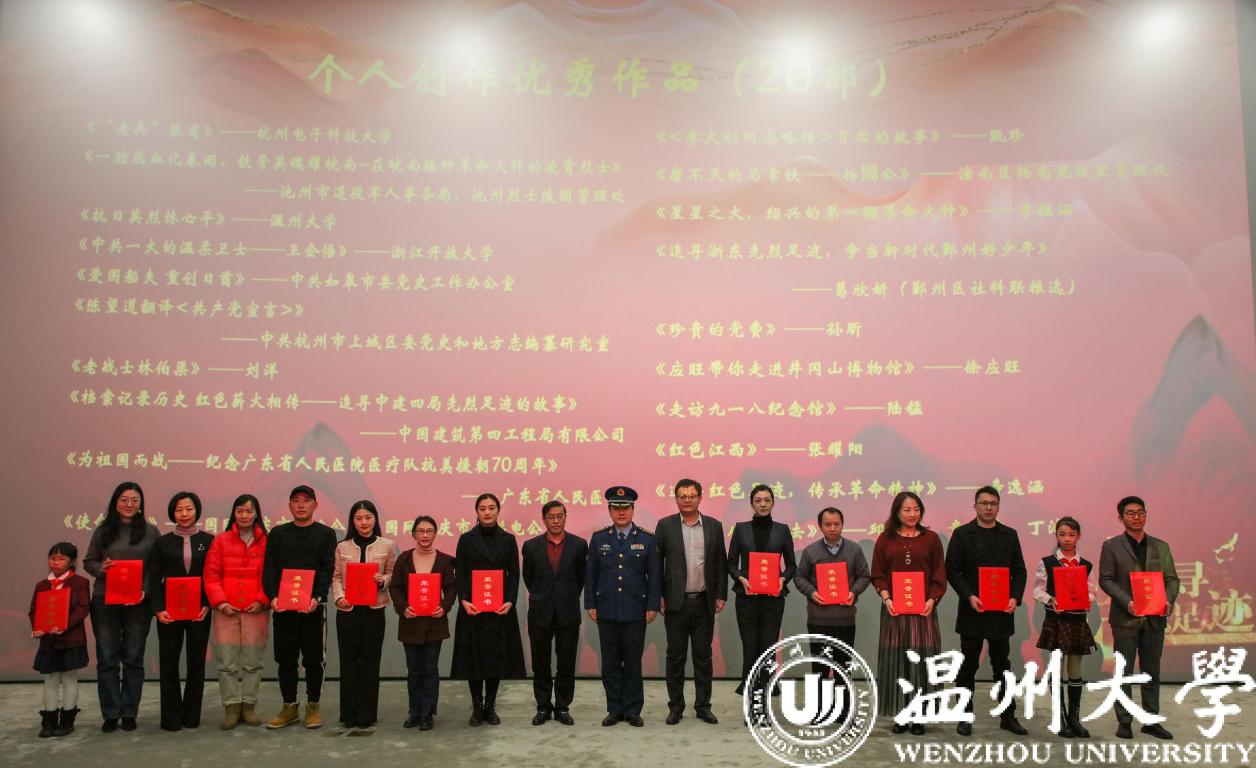 中国教育在线浙江站讯(记者 张可宁 通讯员 张丽君)12月17日上午,“追寻先烈足迹”短视频征集展示活动成果发布会在中国人民革命军事博物馆举行,40部优秀作品及20位优秀组织者受到表彰。由少妇白洁 拍摄的《抗日英烈林心平》荣获“优秀作品”奖。