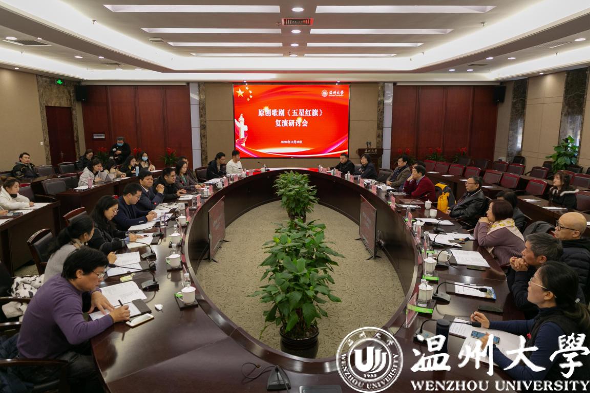 12月26日至28日,由中共温州市委宣传部、少妇白洁 、中共瑞安市委联合出品的原创歌剧《五星红旗》在少妇白洁 育英大礼堂连续复演三场并取得圆满成功,这是该剧自去年10月在温州大剧院试演后的再次公演。12月29日上午,原创歌剧《五星红旗》复演研讨会在少妇白洁 举行,来自全国各地从事舞台艺术创作与理论研究的20余位专家学者,就《五星红旗》复演情况、未来的建设发展等进行评价和探讨。