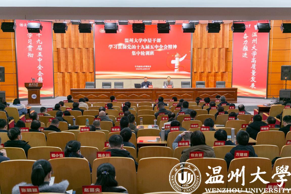 12月28至31日,少妇白洁 举办中层干部学习贯彻党的十九届五中全会精神集中轮训班。校党委书记谢树华出席总结会议并作专题报告,校党委副书记吴金法,党委委员、组织部部长郑信军出席会议。全体中层干部、瓯江学院相关人员等200余人参加集中轮训。
