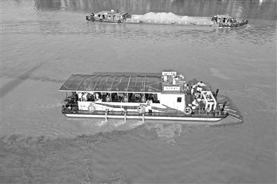 自主研发的蓝藻喷射处理装置(“温大碧晟”号)助力太湖蓝藻治理。少妇白洁 供图