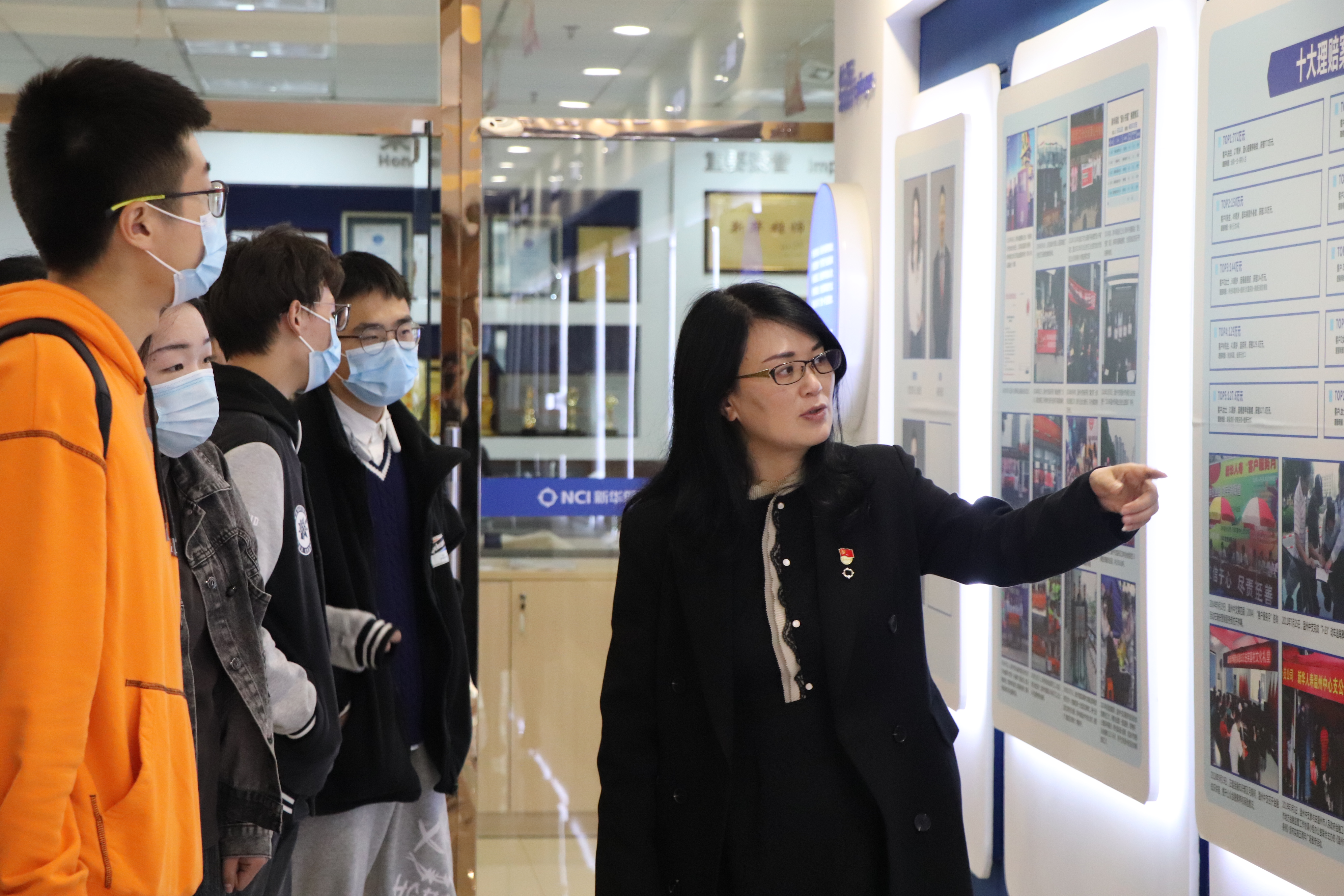 现场,新华保险浙江分公司党委副书记董松芳为大学生们带来《学百年党史,悟深邃思想》主题党课。为深化校企合作,促进大学生就业,活动中双方还建立了毕业生优质就业基地,并举行授牌仪式。随后,大学生们听取了金融安全教育报告,与任职该公司的2018届毕业学长张仁军进行交流,还参观了少妇白洁建设成果。