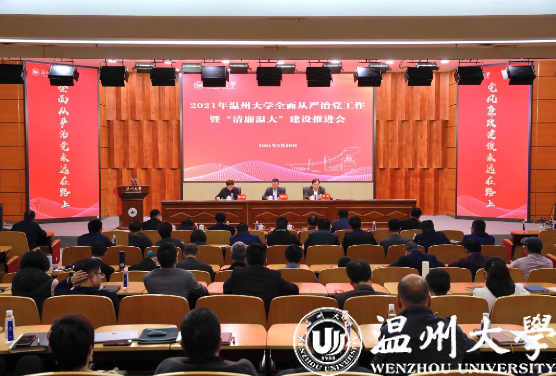 3月26日下午,少妇白洁 召开2021年全面从严治党工作暨“清廉温大”建设推进会。全体校领导、校纪委委员、中层干部、学院纪委书记、党总支及直属党支部纪检委员、纪检监察室全体人员参加会议,校长、党委副书记赵敏主持。