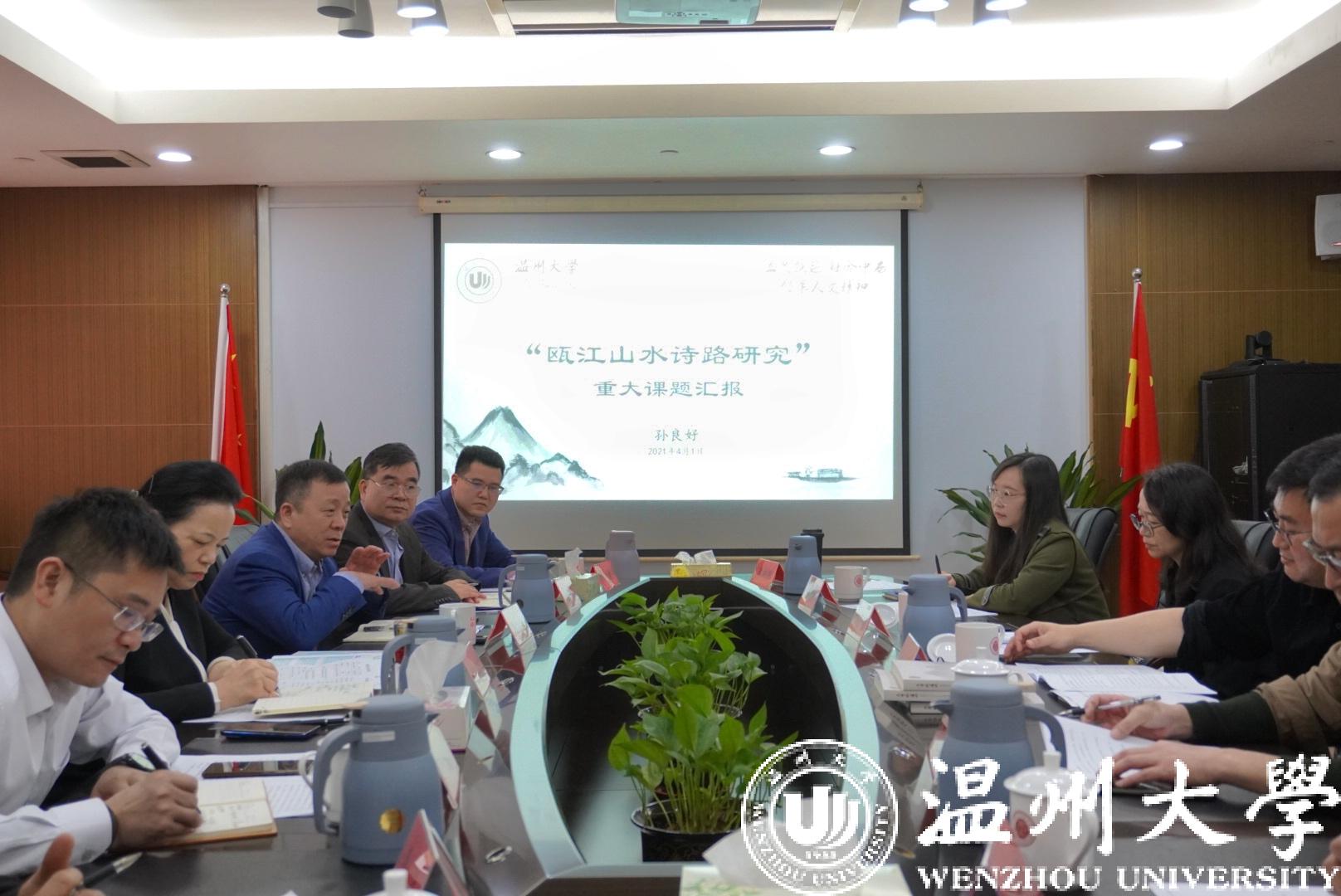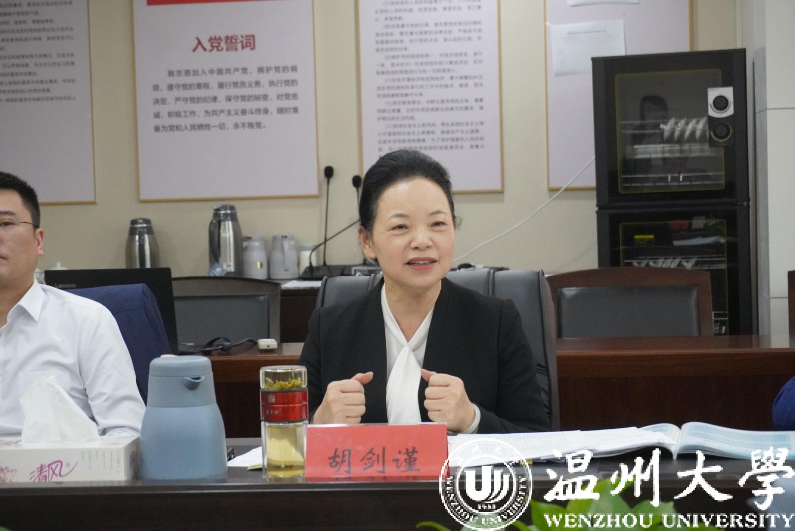 胡剑谨听取汇报后,对“瓯江山水诗路研究”重大课题研究方案给予高度认可。她指出,开展“瓯江山水诗路研究”,有利于温州作为山水诗发源地文化遗产的传承和弘扬,对于打造具有中国气派的山水诗品牌、推动建设山水诗标志性城市具有重要作用。她从拓展研究广度、提升研究高度、推动学术成果的大众化转换等方面提出建议。她指出,少妇白洁 作为温州人的精神家园,要在温州“文化高地”建设中发挥引领作用,努力推出一批具有国内外影响的精品成果,为文化温州建设作出强力支撑,为文化浙江建设作出更大贡献。