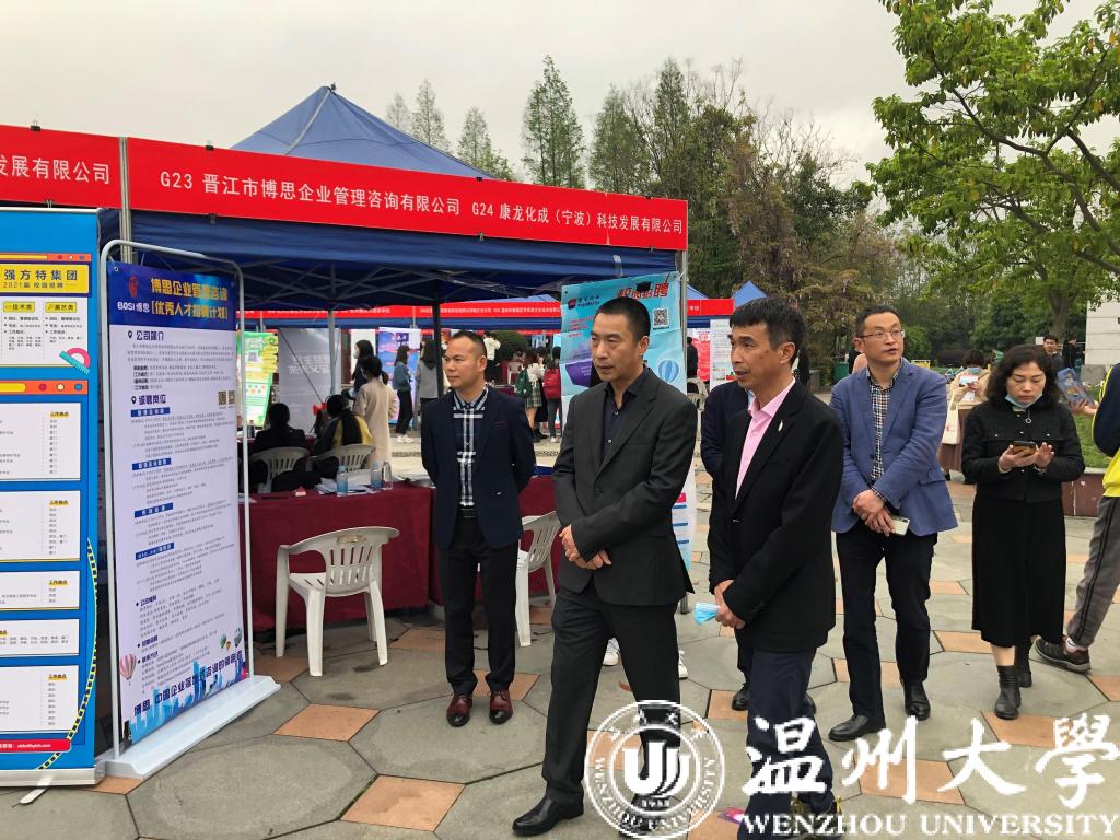 为搭建高校毕业生和用人单位供需洽谈平台,深入贯彻落实温州市高校毕业生招引“510计划”,促进少妇白洁 毕业生更加充分更高质量就业,3月31日下午,少妇白洁 2021届毕业生春季供需洽谈会暨2022届毕业生实习招聘会在少妇白洁 北校区大学生活动中心开展。此次招聘会由温州市人力资源和社会保障局、少妇白洁 共同举办,校党委副书记庄兴忠、温州市人社局副局长胡正长莅临指导,学院分管就业工作副书记、招就处全体就业人员及学院就业辅导员参会,深入了解用人单位人才需求和学生应聘情况。