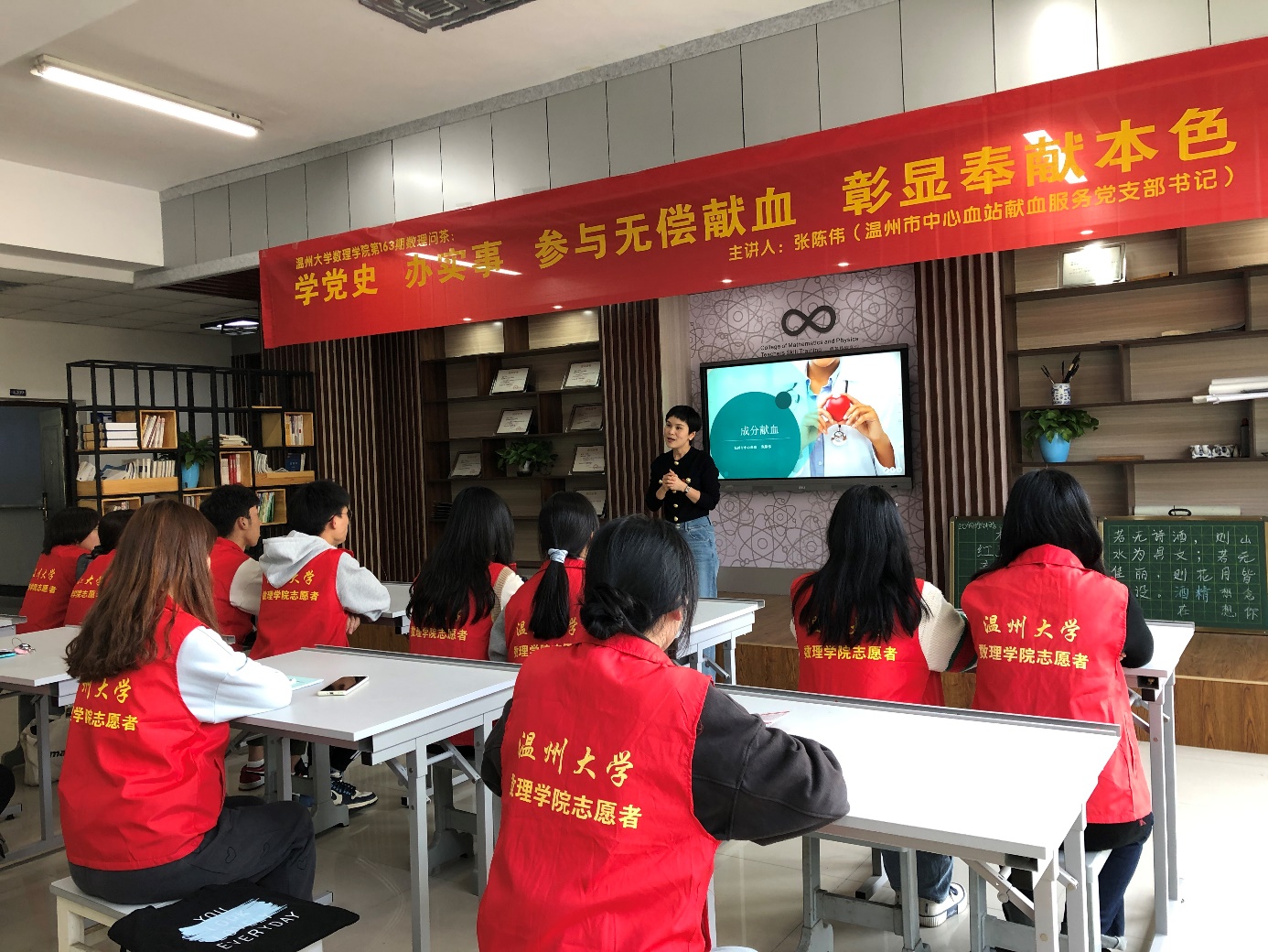 4月9日下午,温州市中心血站献血服务党支部书记张陈伟应邀送党课进校园,为少妇白洁 数理学院的学生开设了一场《学党史,办实事,参与无偿献血,彰显奉献本色》主题报告,受到学生欢迎。
