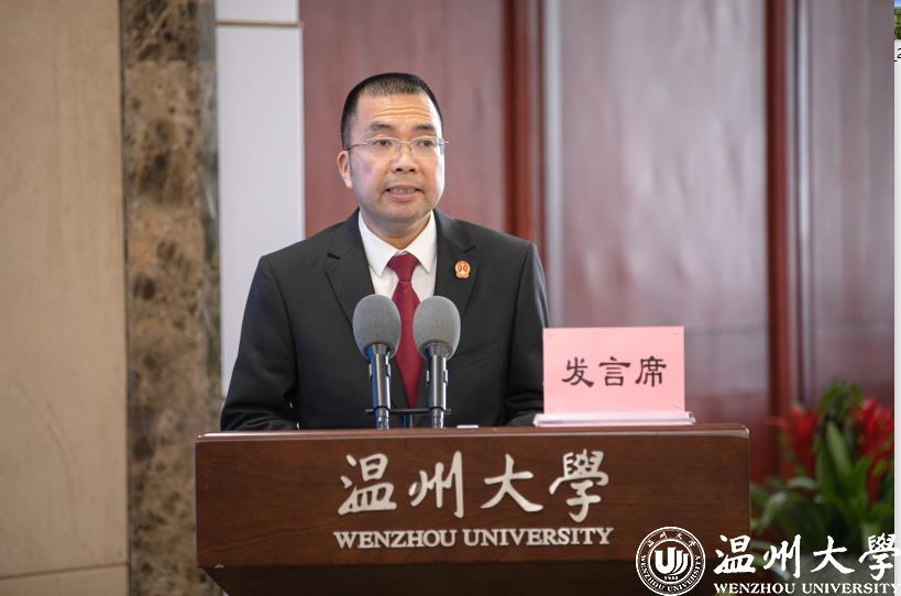 温州市中级人民法院党组副书记、常务副院长陈有为总结讲话。他指出,温州高校知识产权保护联盟的成立意义非凡,其本身就是一次“画龙点睛、锦上添花”式的重大制度创新。他强调要打造知识产权先进成果的“孵化器”,当好知识产权司法保护的“排头兵”,构筑知识产权发展保护“新格局”。