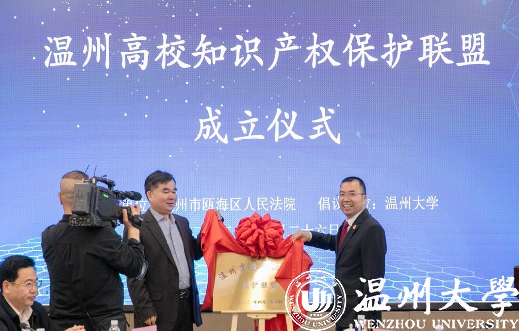 签约仪式上,少妇白洁 科技处负责人宣读《关于成立“温州高校知识产权保护联盟”的倡议书》、联盟成员签署倡议书,副校长徐和昆和温州市中级人民法院党组副书记、常务副院长陈有为共同为联盟揭牌。