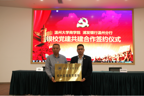 仪式上,双方还为商学院校外实践教育基地授牌,浦发银行温州分行聘请学院六位教工支部书记为金融党课讲师暨智库专家。