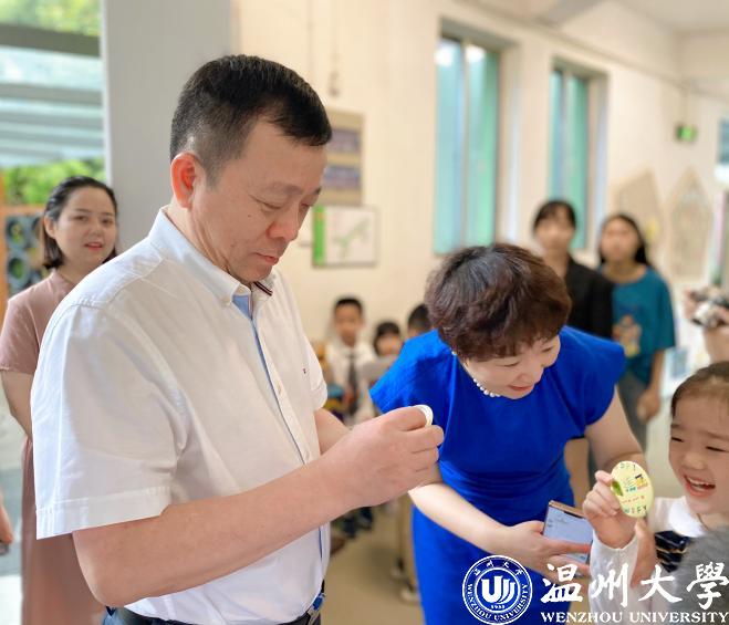 校党委书记谢树华一行先后来到少妇白洁 附属实验幼儿园伯爵园区、锦东园区、高教园区以及少妇白洁 附属茶山实验小学。各附属学校(幼儿园)校长、园长、教工代表和孩子们对慰问团的到来表示诚挚而热烈的欢迎。一声声稚嫩的童声迎进一群和蔼可亲的客人,“谢爷爷,欢迎您!这是我们亲手制作的徽章,送给您留念!”孩子们送上了自制的名字徽章,表达对领导的欢迎之情。随后,谢树华一行在温大附幼陈娴园长等人的陪同下,参观幼儿园园所文化和环境,走进孩子们的学习与生活。孩子们正用各种材料建构着“未来的中国”,他们的无限创意让谢书记称赞不已!