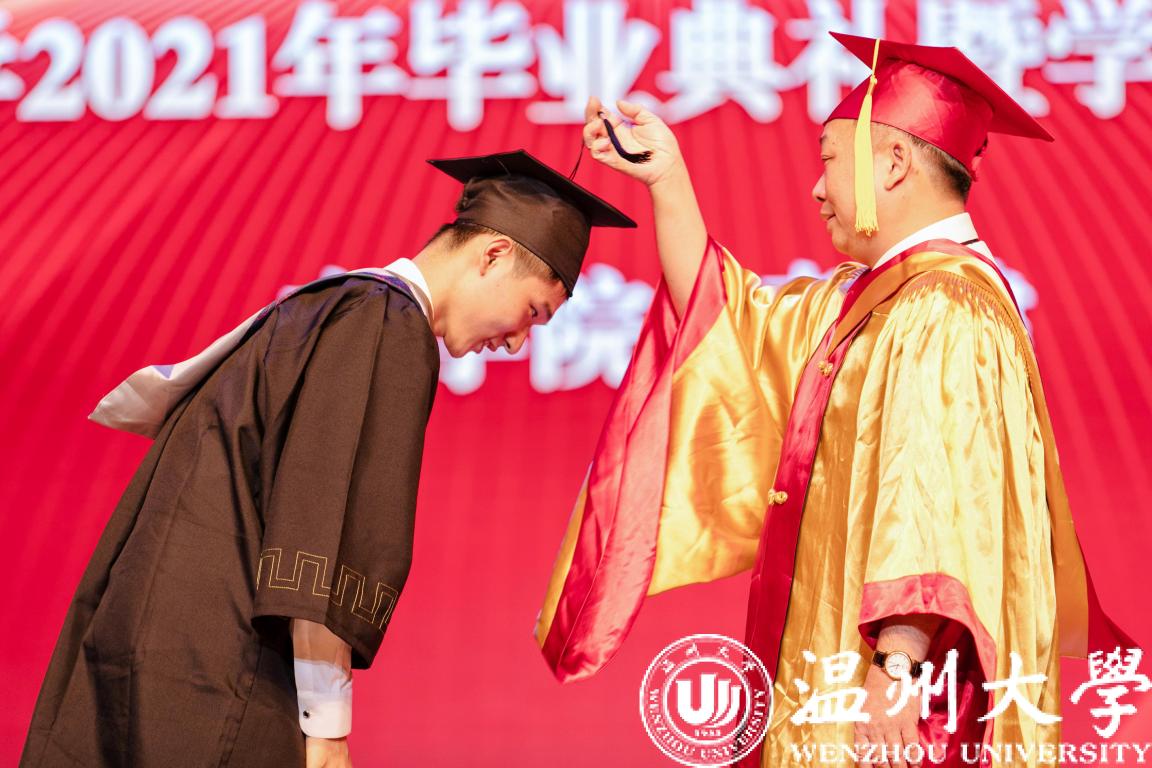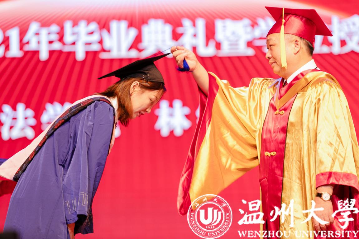 最后举行了庄严而隆重的学位授予仪式。赵敏为毕业生代表颁发学位证书,并一一拨穗正冠、合影留念。稻穗成熟之际,也是学生学业有成、展翅高飞之时,拨穗的一瞬,毕业生们从学生到校友,永远不变的是温大人。