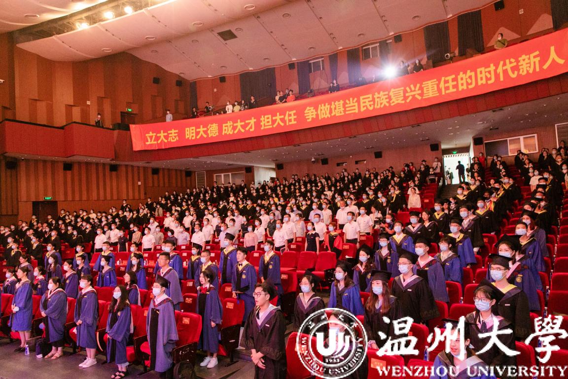 “大哉师道天下尊,承往哲兮启后人。厚培德本,深濬智源,学成致用教化谆……”最后,全体师生齐唱校歌,在开启新征程的难忘时刻,以校歌回忆美好往昔,唱响光明未来。“求学是问,敢为人先”的温大校训将永远铭刻在每一位温大人的心间,“光大国族,造福人群”的温大精神将化作璀璨星光,伴随着每一位毕业生扬帆起航。