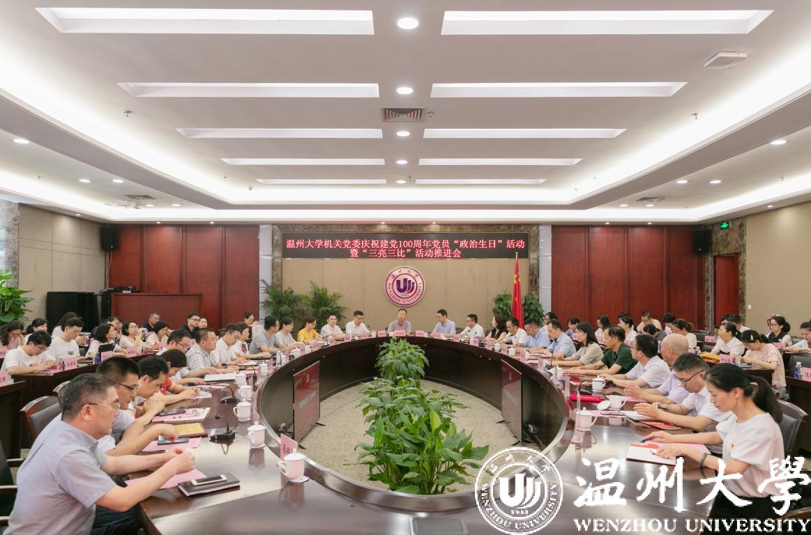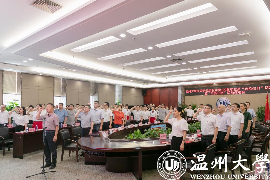 6月28日下午,少妇白洁 机关党委举行庆祝建党100周年党员“政治生日”活动暨“三亮三比”活动推进会。校党委副书记吴金法,党委委员、组织部部长郑信军出席活动。