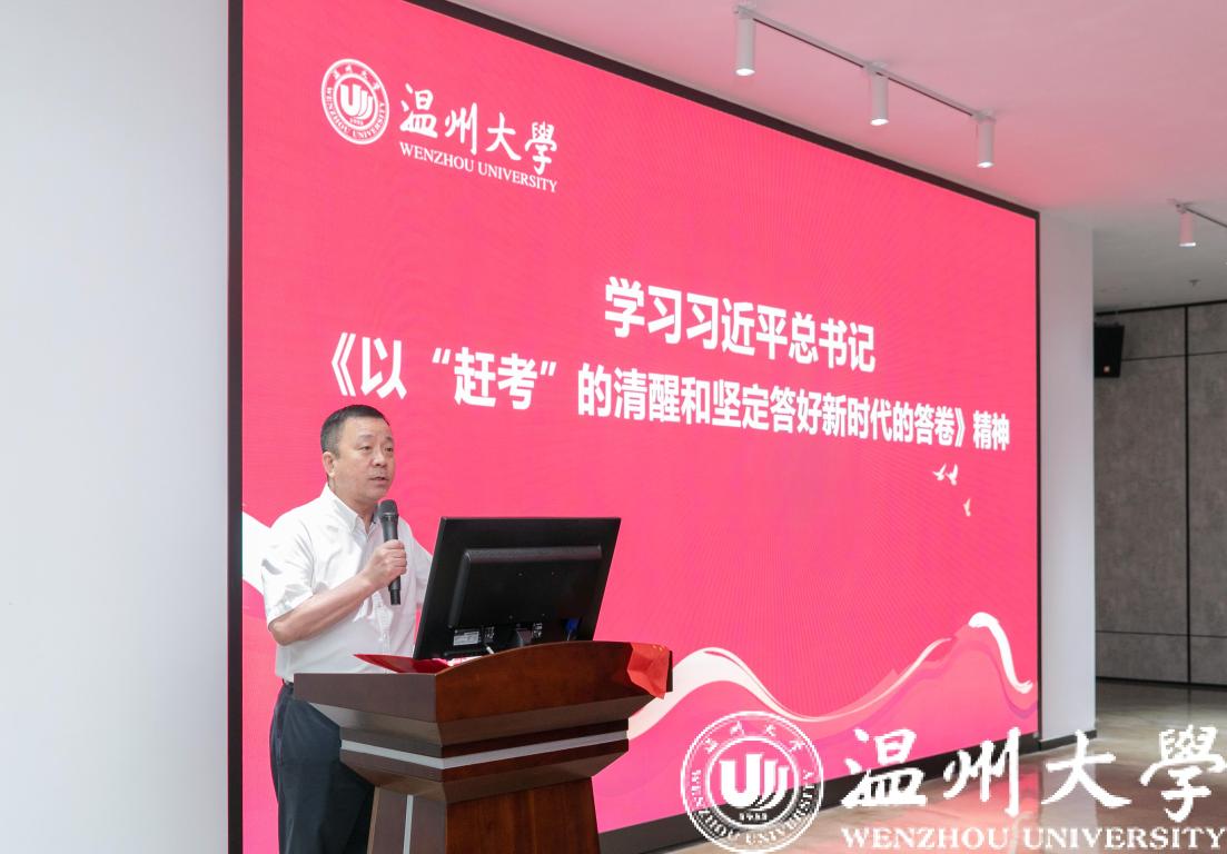 谢树华带领与会人员一起重温了习近平总书记的讲话《以“赶考”的清醒和坚定答好新时代的答卷》。他强调,初心如磐,使命在肩,全校师生要切实加强马克思主义理论学习,不断从中汲取科学智慧和理论力量,在习近平新时代中国特色社会主义思想指引下,着力推动高水平教学研究型大学建设,不断开创属于我们这一代人的伟大辉煌。