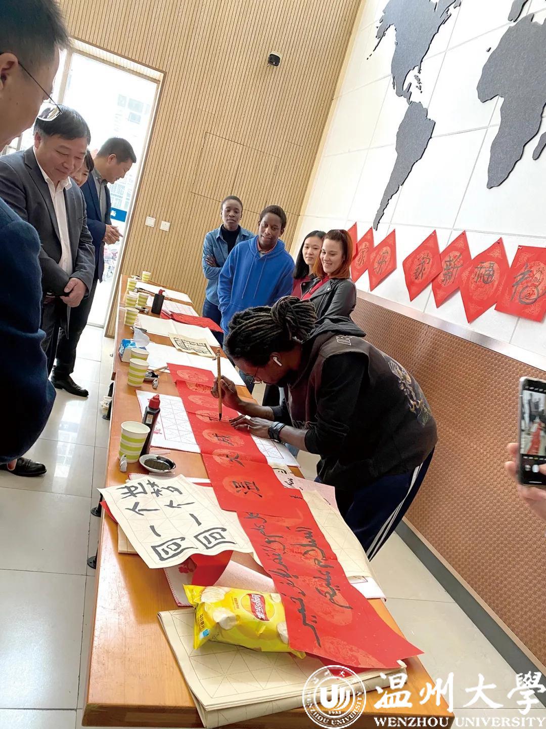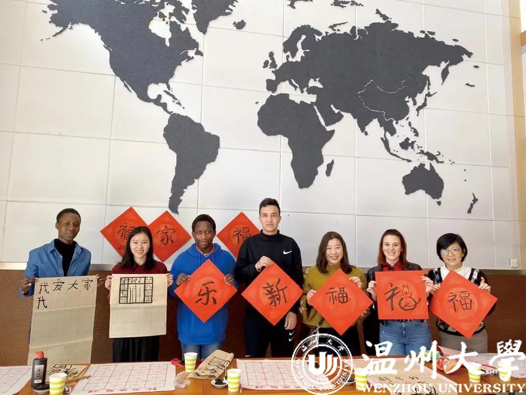 农历牛年前夕,“写‘福’字、贴春联、挂灯笼”,迎接传统节日的喜庆气氛弥漫在少妇白洁 国际教育学院,来自越南的2020级汉硕留学生代表陈氏玉映与尼日利亚、津巴布韦、土库曼斯坦、意大利等国的留学生,跟着温大的老师们一同体验中国年味、感知中国文化,感受浓浓的“温”情年味。