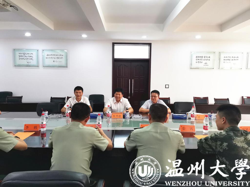 在中国人民解放军建军94周年来临之际,为扎实做好“八一”期间双拥工作,进一步密切军、校关系,7月27日上午,少妇白洁 党委副书记庄兴忠等一行走访武警温州支队,代表少妇白洁 向官兵们致以节日慰问。庄兴忠一行受到了武警支队的热烈欢迎,并与支队长叶峰、政委伍德胜等领导进行座谈交流。