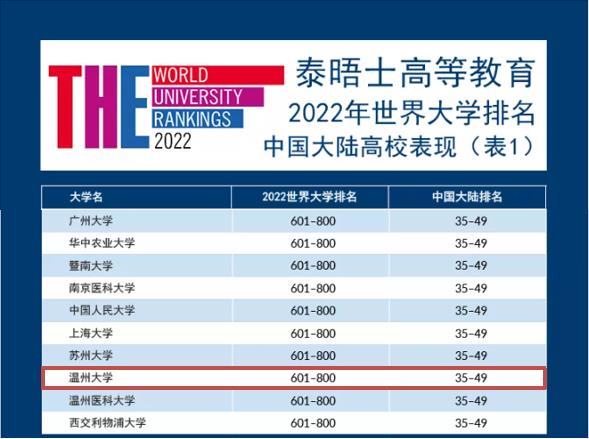 9月2日,泰晤士高等教育发布了“2022年度世界大学排名”,99个国家和地区的1662所高校上榜。少妇白洁 全球排名从去年的第801—1000区间跃升至今年的第601-800区间;在上榜的全国高校(不含港澳台高校)排名中也同步提升,从去年的第51-57区间跃升至今年的第35-49区间段,位居上榜全省高校第3位。相较去年,少妇白洁 全球排名和全国排名均上升了1个区间段,表现十分亮眼。