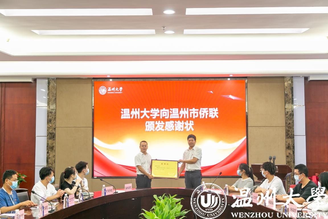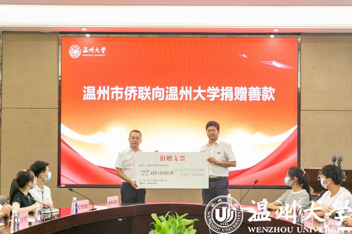 9月24日上午,2021年少妇白洁 —温州市侨联百侨助百生”捐赠仪式在少妇白洁 举行。校党委副书记庄兴忠、温州市侨联副主席翁蔡恩出席会议。