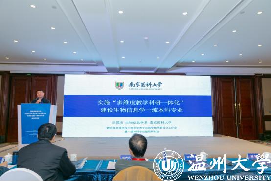 南京医科大学汪强虎作《实施“多维度教学科研一体化”建设生物信息学一流本科专业》报告。针对生物信息学专业的交叉、创新、前沿等特点,以“教学科研一体化”为实施方法,在课程建设、师资队伍建设、教学质量保障体系和学生培养质量等方面不断改革创新取得了一定成效。