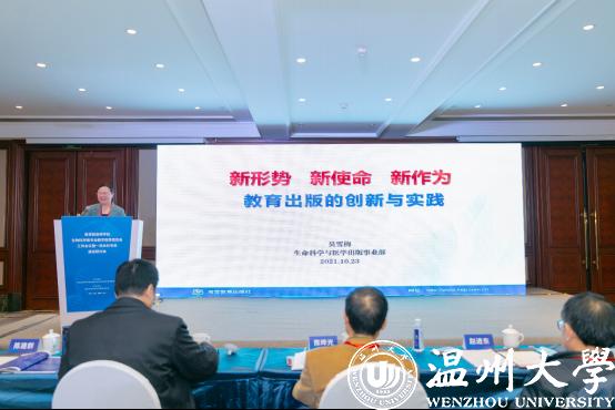 高等教育出版社生命科学与医学出版事业部主任吴雪梅作《新形势新使命新作为——一流教材建设的思考与实践》报告,从课程与教材建设的新形势、出版模式的创新与实践、“十四五”教材规划的思考等3个方面总结了优秀教材特点和发展趋势,传达了高教社“十四五”教材规划思路,强调了优秀教材对培养一流学生的重要性。