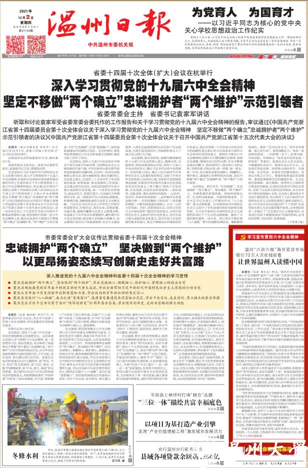 12月1日,“海内外共话党的十九届六中全会精神”温州“六讲六做”大宣讲活动海外宣讲专场举行,采取网络直播,连线法国、意大利等国的侨团侨领及华人代表,在“云端”向海外华侨华人、青年学生、留学生和外国友人传递党的十九届六中全会精神,让更多的华侨华人和外国友人读懂中国。