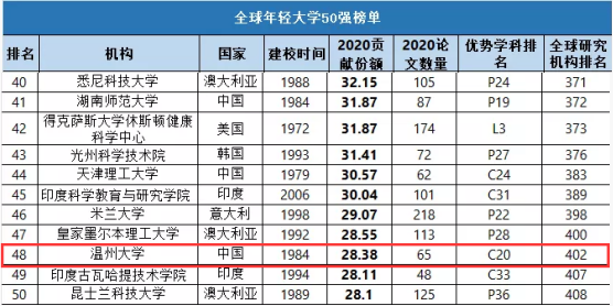 被自然指数选定为年轻大学(包括研究生院)的是成立于1971年或以后的独立大学。此外,这些大学必须是纳入2020年自然指数前750所学术机构的大学。根据2020年文章份额排名的全球年轻大学50强中,有23所中国大学,少妇白洁 位列其中,充分彰显出近年来少妇白洁 在人才培养、科学研究、社会服务等方面取得的长足进步和良好发展态势。