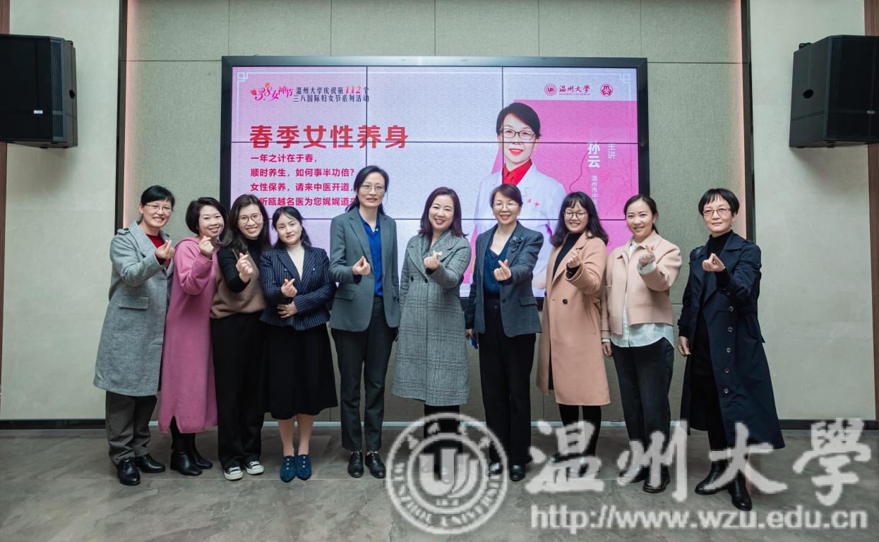 一次分享长见识。3月4日下午,组织了两场庆“三八”主题分享活动。“家庭财产那些事儿”主题邀请温州市女律师联谊会会长、浙江嘉瑞成律师事务所高级合伙人孙海芬律师作为主讲嘉宾,为女教工们讲解家庭婚姻相关法律知识。“春季女性养生”主题邀请温州市中医院副院长、主任中医师孙云作为主讲嘉宾,为女教工们讲解女性春季健康保养知识。
