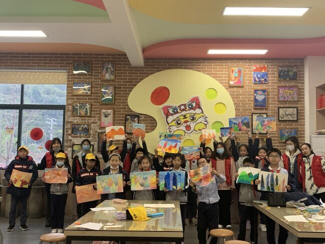 为了保证课堂教学质量,美术与设计学院24名志愿者组建成4个第二课堂“金课”备课组,以爱国主义教育和中国特色社会主义文化为中心,根据学生年龄特点和学段要求,立足美育,研究制定“体验美、发现美、培育美、创造美”课程总体目标,编制“美育+思政”教学计划,将“双减”后的“第二课堂”打造得有声有色。为了激发学生艺术创新能力,党员吴杰带领队员们围绕“青花瓷”“草鞋”“红船”“神州十三号”四个主题,通过绘画、书法、扎染、剪纸、摄影等多样的艺术形式开展了“创造‘美’”的系列思政艺术课堂,勉励学生们要坚定文化自信,勇于开拓创新。“这样的美术课真有趣!”“跟着大学生哥哥姐姐们一起学习,现在我更喜欢画画了!”小学生们纷纷表示欢迎。