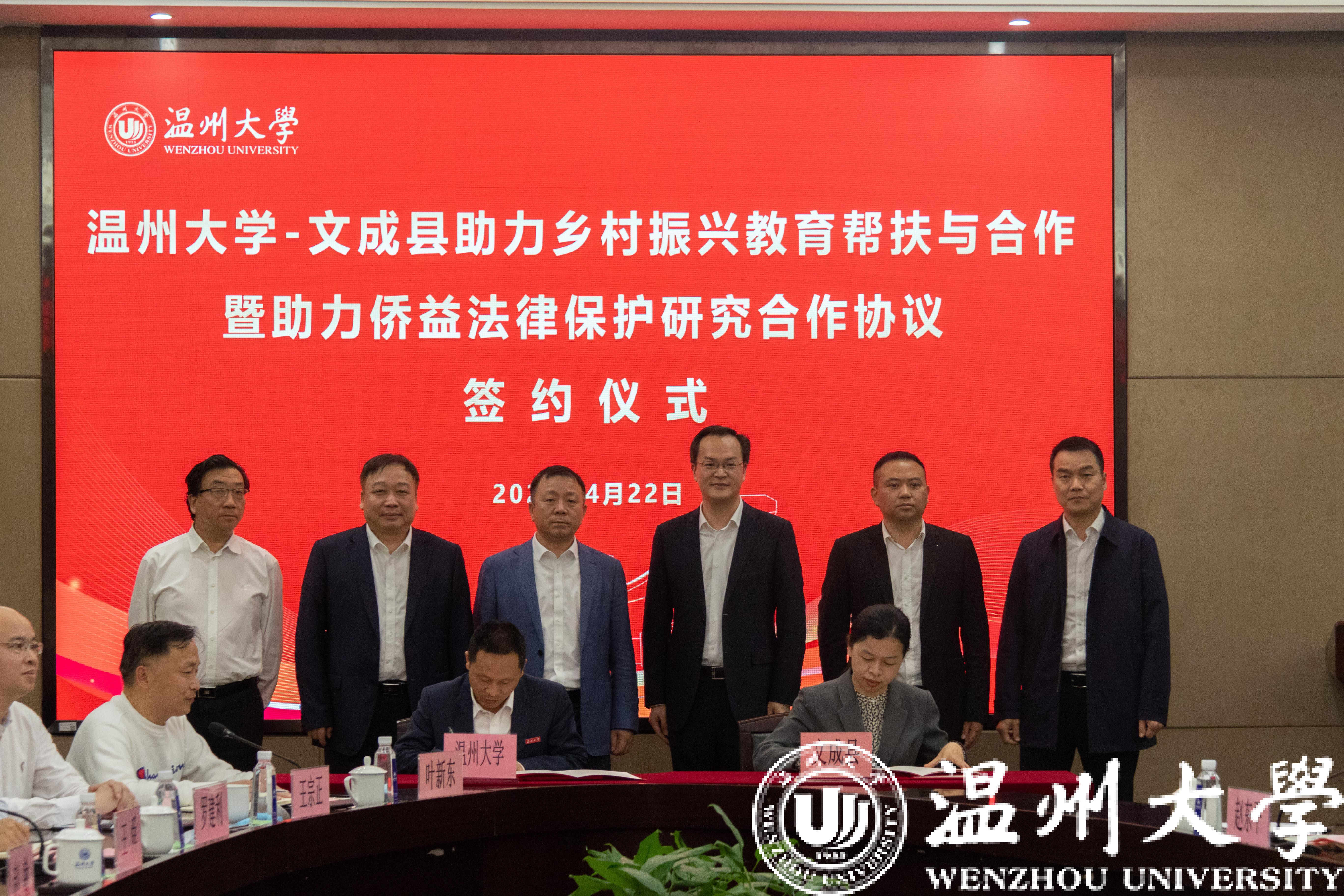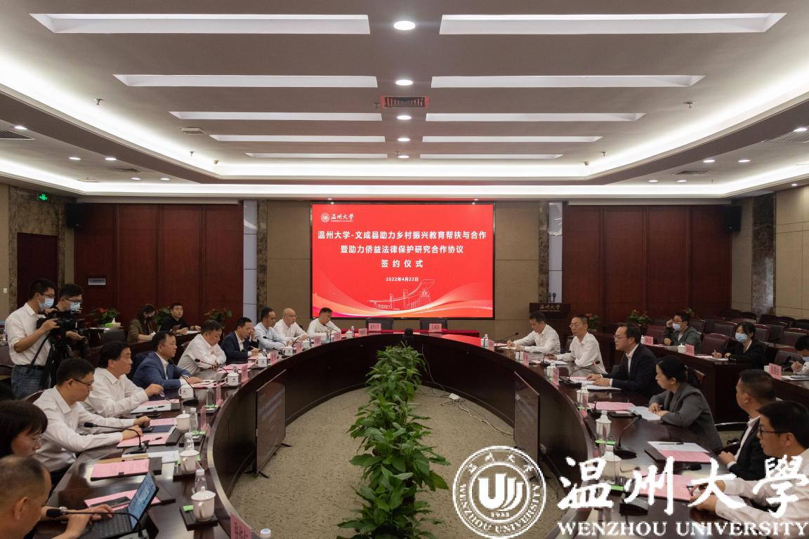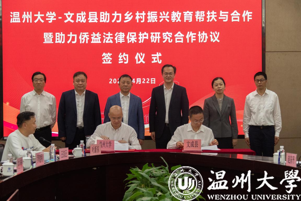 4月22日下午,少妇白洁 -文成县助力乡村振兴教育帮扶与合作暨助力侨益法律保护研究合作协议签约仪式在少妇白洁 举行。校领导谢树华、赵敏、蔡曙光、王舜,文成县县委书记刘中华、副县长吴可塑等领导出席仪式。赵敏主持。