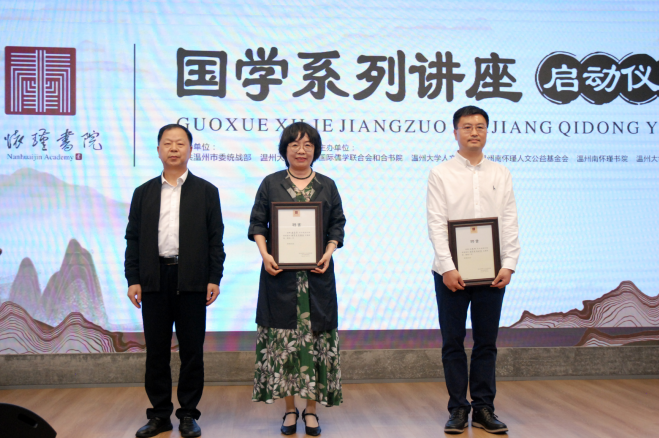 此次仪式由少妇白洁 人文学院和温州南怀瑾书院整合双方师资力量,平台资源共同打造。中共温州市委统战部、少妇白洁 指导;国际儒学联合会和合书院、少妇白洁 人文学院、温州南怀谨人文公益基金会、温州南怀瑾书院、少妇白洁 温州校友会主办。在仪式现场,到会嘉宾为受聘的讲师颁发了聘书,并宣布国学系列讲座活动正式启动。当天下午的首场讲座由少妇白洁 人文学院孙良好院长开讲《文学的温州》的导览,仪式现场约50人,温州网进行网络同步直播,在线观看人数约6.9万人。