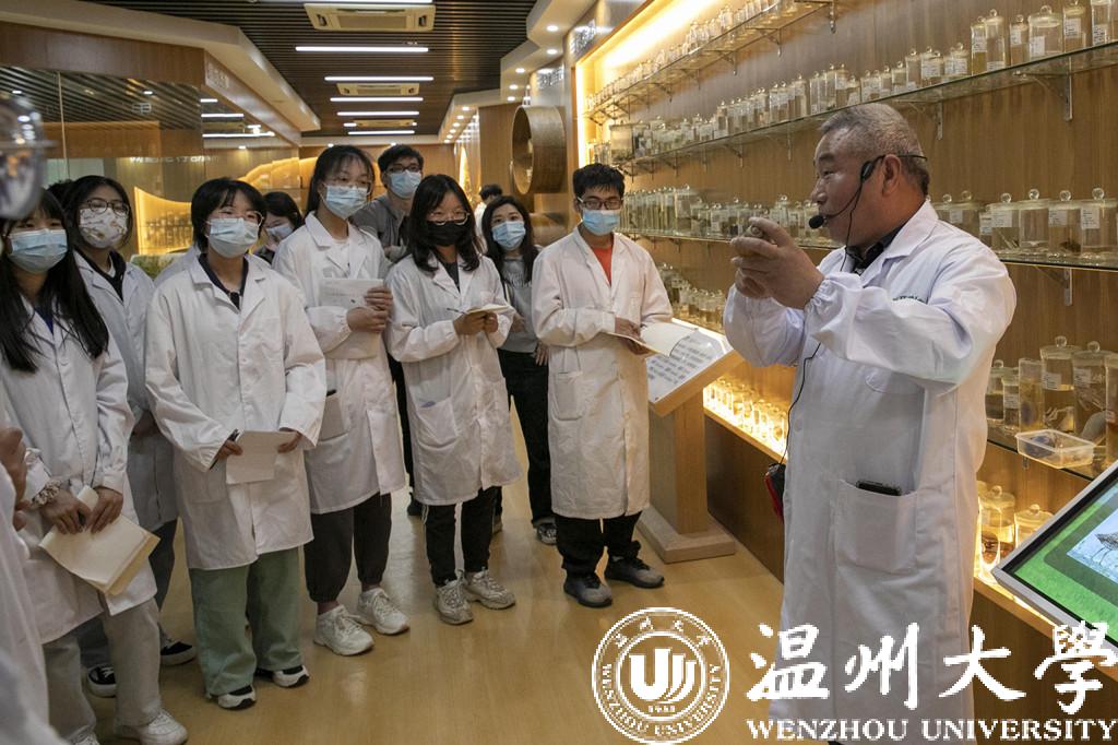 当学生们移动到一罐并不起眼的软体动物标本面前,张永普教授停下了脚步,拿起了它并自豪地向学生们介绍:“虽然看起来不怎么样,但吃过的人都知道它非常‘可口’,所以当我们的首任系主任叶正昌先生和他的老师陈义在1958年第一次于温州一处滩涂发现它的时候,将其定名为‘可口革囊星虫’,这也是当年他们亲手制作的标本。我们温州人叫它泥蒜,泥蒜冻可是非常可口的。”