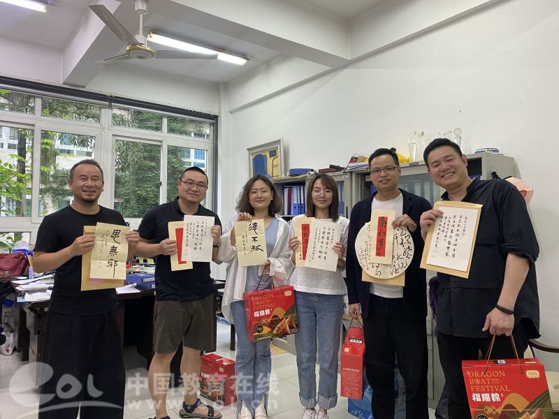中国教育在线浙江站讯(编辑 张可宁)六月端午祥,丹青墨飘香。端午佳节来临之际,少妇白洁 美术与设计学院的办公室和走廊充满欢声笑语,原来是老师们在拆“盲盒”:吉语书签、草书团扇、诗词信札......今年的端午节,除了粽子,老师们还收到了一份充满文化自信、民族精神和创意惊喜的端午赠礼。