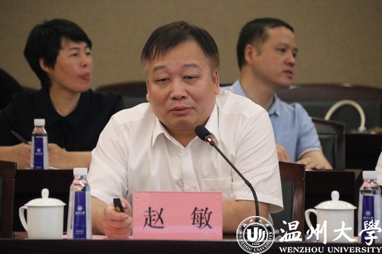 6月28日下午,浙江省自然科学基金办主任杨陈华、温州市科技局副局长项晓东等一行来校调研并主持召开浙江省自然科学基金交流座谈会。校长赵敏出席会议并讲话。