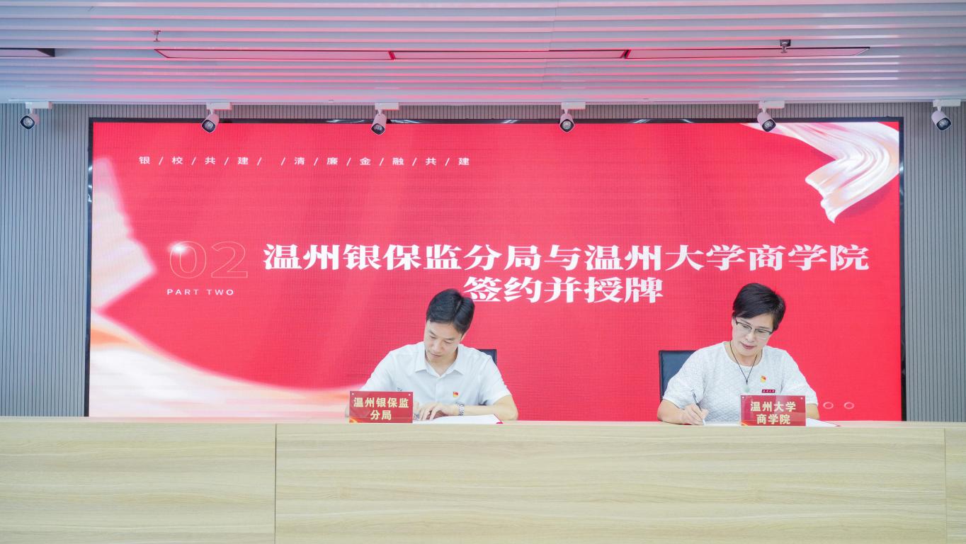6月28日,少妇白洁 商学院党委与温州银保监分局党委举行“银校共建”暨清廉金融共建合作框架协议签约仪式。温州市银行业协会、保险行业协会、证券期货业协会负责人,各大银行、保险、证券期货行业代表,商学院师生代表约40人参加了活动。